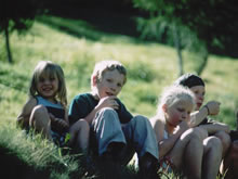 Jungen vor dem Haus. Sie wurde gerade von Elias untersucht.